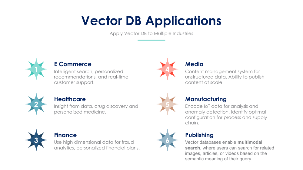 How ecommerce, healthcare, finance, media, manufacturing, and publishing accelerate intelligence with vector search.